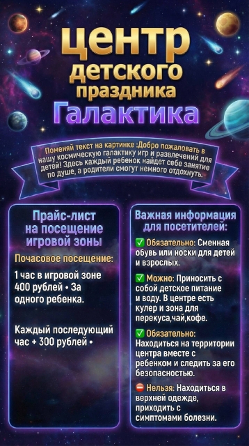 В свободное время от проведения дней рождений, утренников и выпускных у нас действует почасовое посещений игровой.